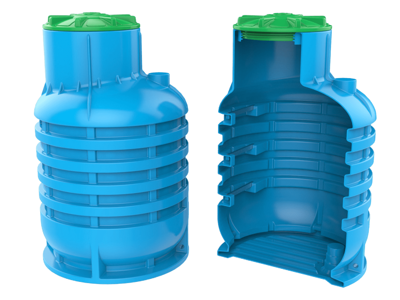 d 1 х 2 м высота. d 1,2 х 2м высота. d 1,5 х 2м высота. d 1,8 х 2м высота , внутри пластикового кессона можно установить гидробаки различного объёма, а также установить систему водоочистки водоподготовки.
